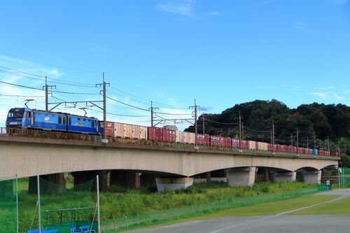 撮影地 武蔵野線 府中本町〜梶ヶ谷貨物ターミナル間(多摩川) 2088レは酒田発上越線・武蔵野線経由東京貨物ターミナル行の高速貨物列車で、新潟貨物ターミナルから東京までは高崎機関区のEH200が牽引する。*1 撮影地 武蔵野線 府中本町〜梶ヶ谷貨物ターミナ…