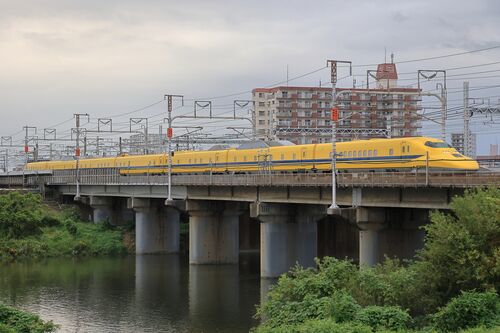 撮影地 東海道新幹線 岐阜羽島〜名古屋間(庄内川) 2025年10月17日から18日にかけて、JR西日本のドクターイエローT5編成による本線検測(のぞみ検測)が東海道・山陽新幹線の東京〜博多間で実施された。 写真は9日の上り本線検測3980A。
