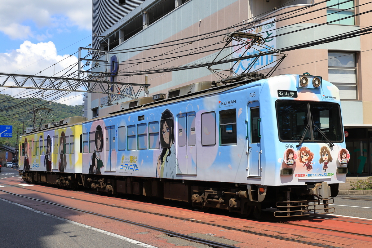 2024年8月1日から石山坂本線の605編成が"響け!ユーフォニアム"ラッピング電車になった。今回も両前面と両側面で異なるラッピングとなっている。